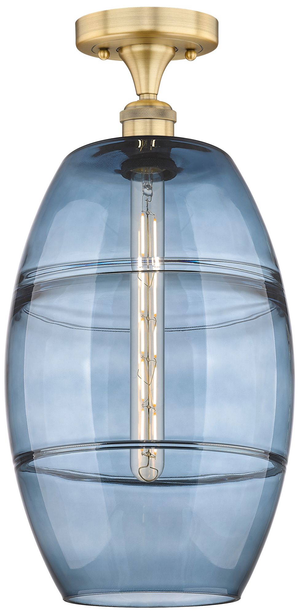 Edison Vaz 10" Wide Brushed Brass Semi-Flush Mount With Princess Blue