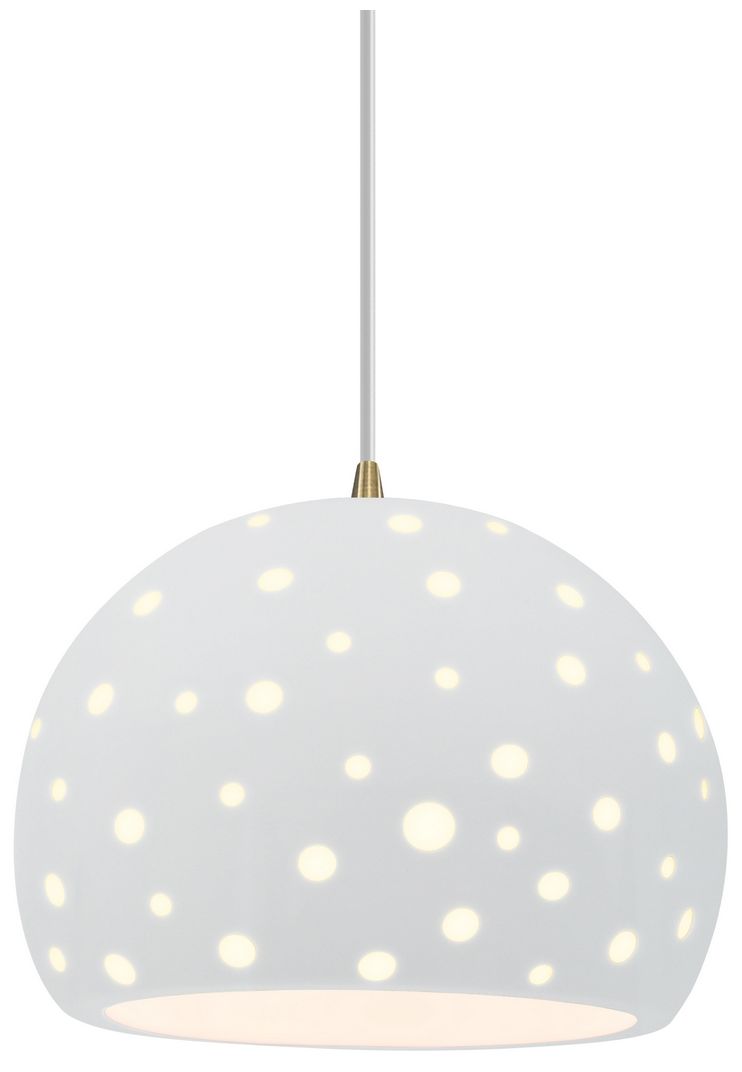Perforated Globe 10"W Gloss White, Polished Chrome Pendant - Rigid Stem