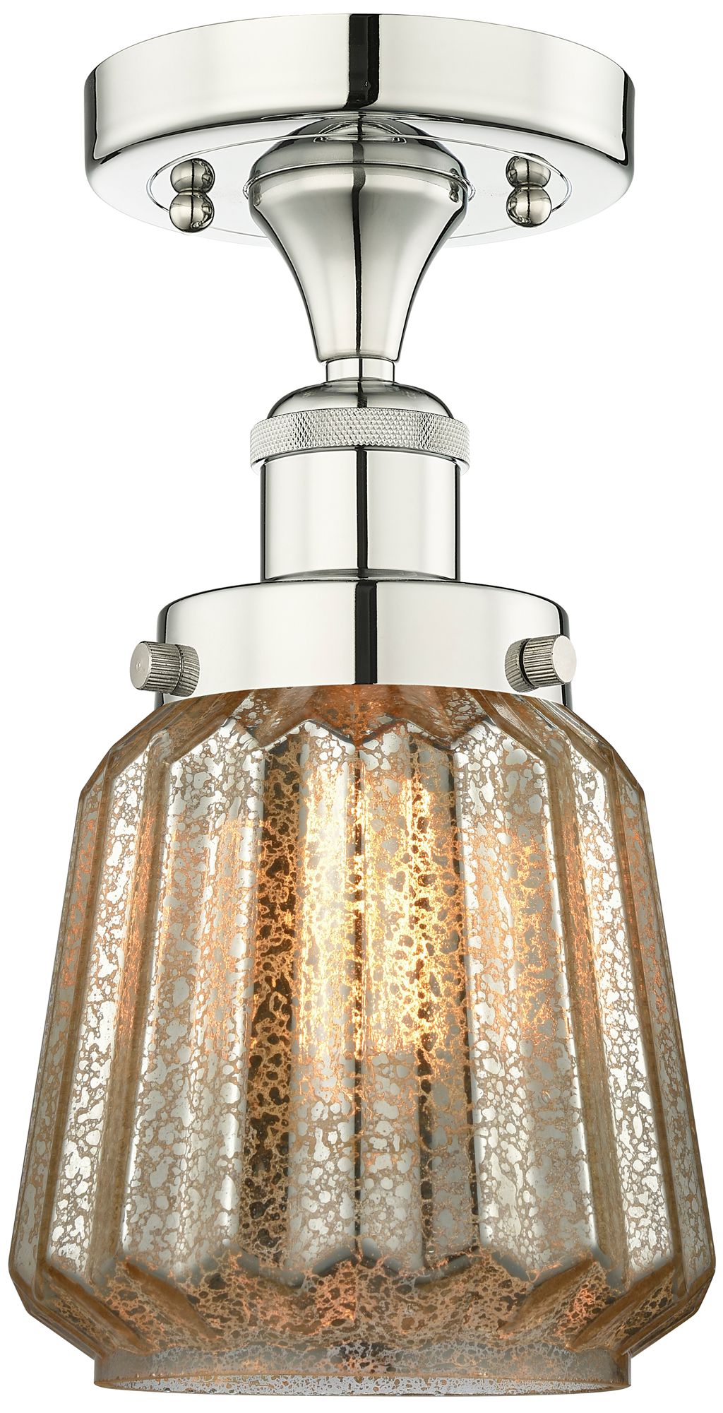 Chatham 6.5" Wide Polished Nickel Semi.Flush Mount With Mercury Glass