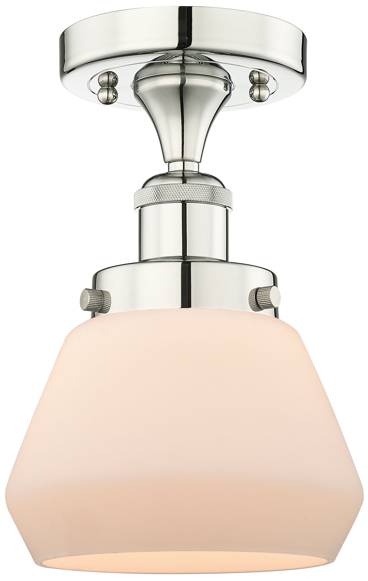 Fulton 6.5"W Polished Nickel Semi.Flush Mount With Matte White Glass S