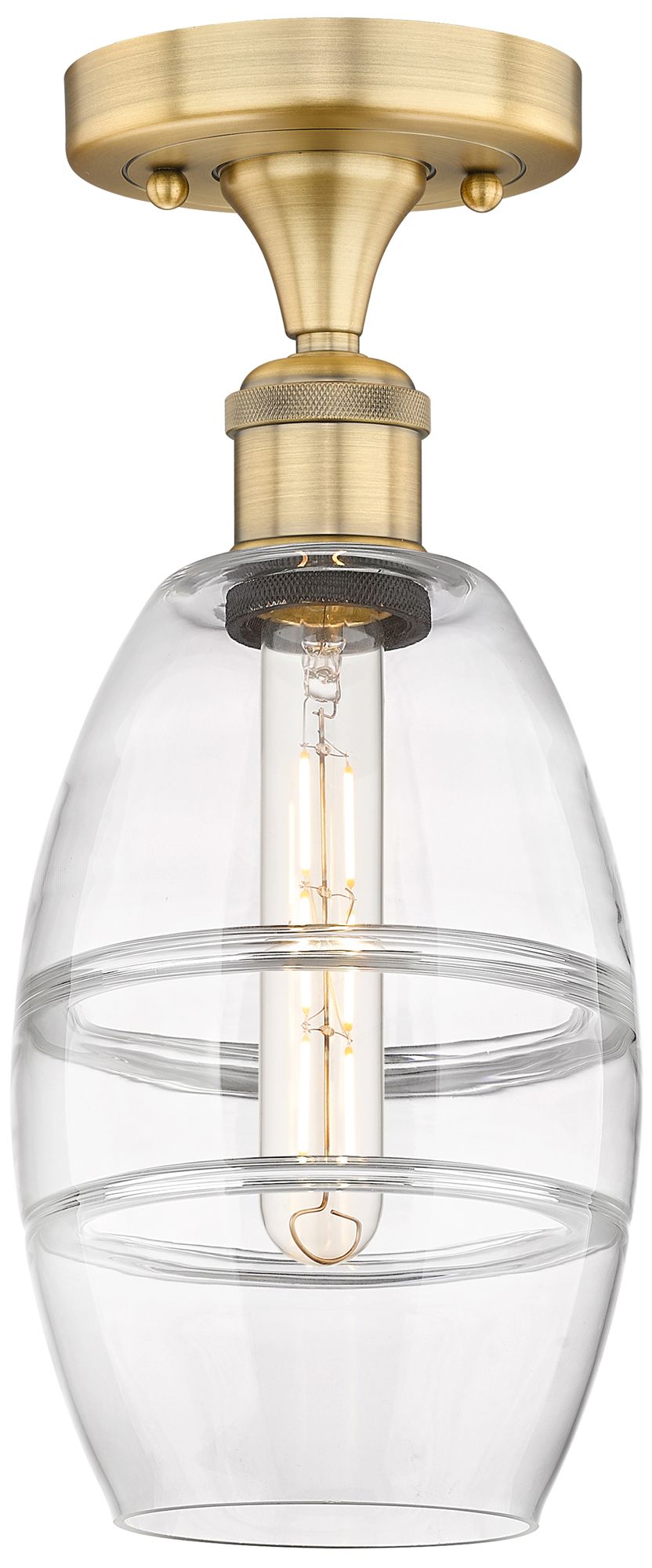 Edison Vaz 5.88" Wide Brushed Brass Semi-Flush Mount With Clear Shade