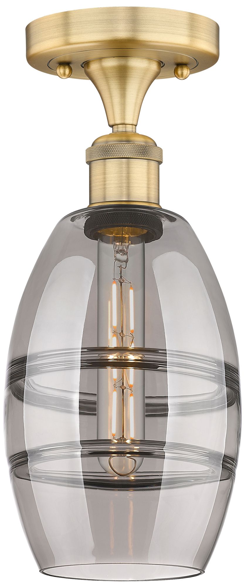 Edison Vaz 5.88" Wide Brushed Brass Semi-Flush Mount With Light Smoke