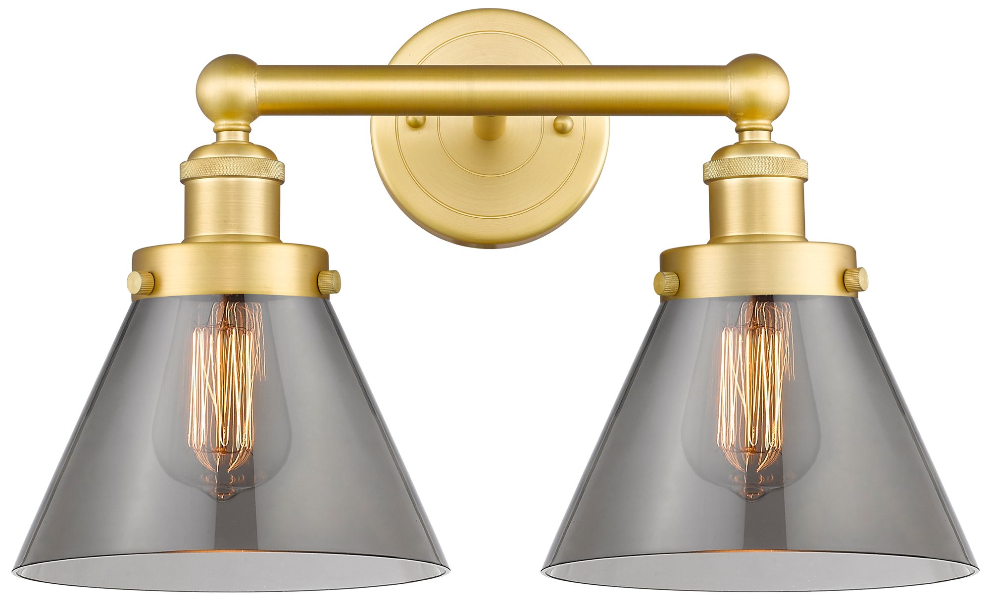 Edison Cone 15.5"W 2 Light Satin Gold Bath Light With Plated Smoke Sha