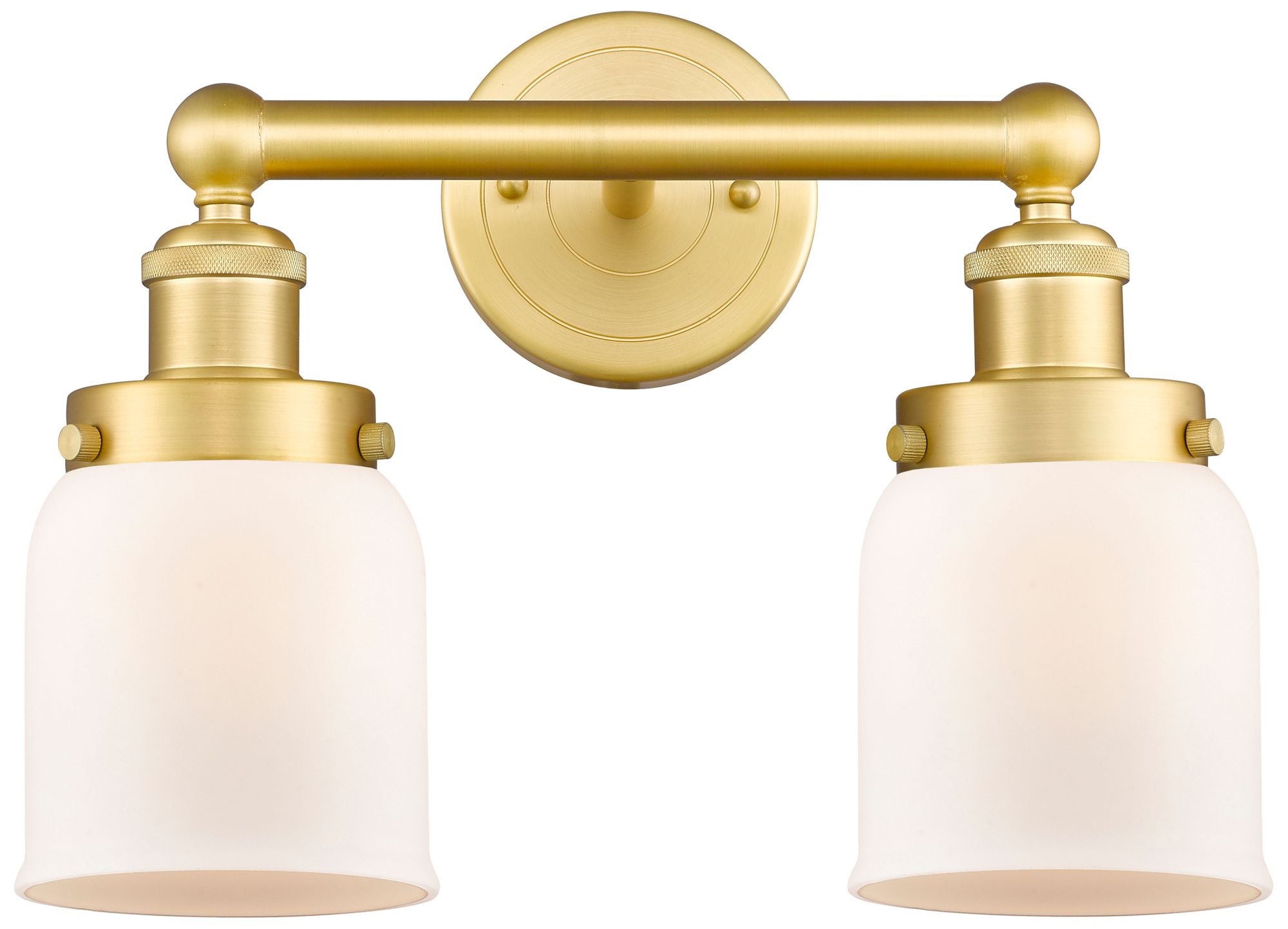 Edison Small Bell 15.5"W 2 Light Satin Gold Bath Light With White Shad