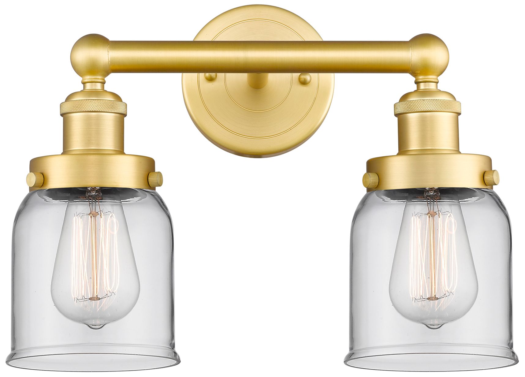 Edison Small Bell 15.5"W 2 Light Satin Gold Bath Light With Clear Shad