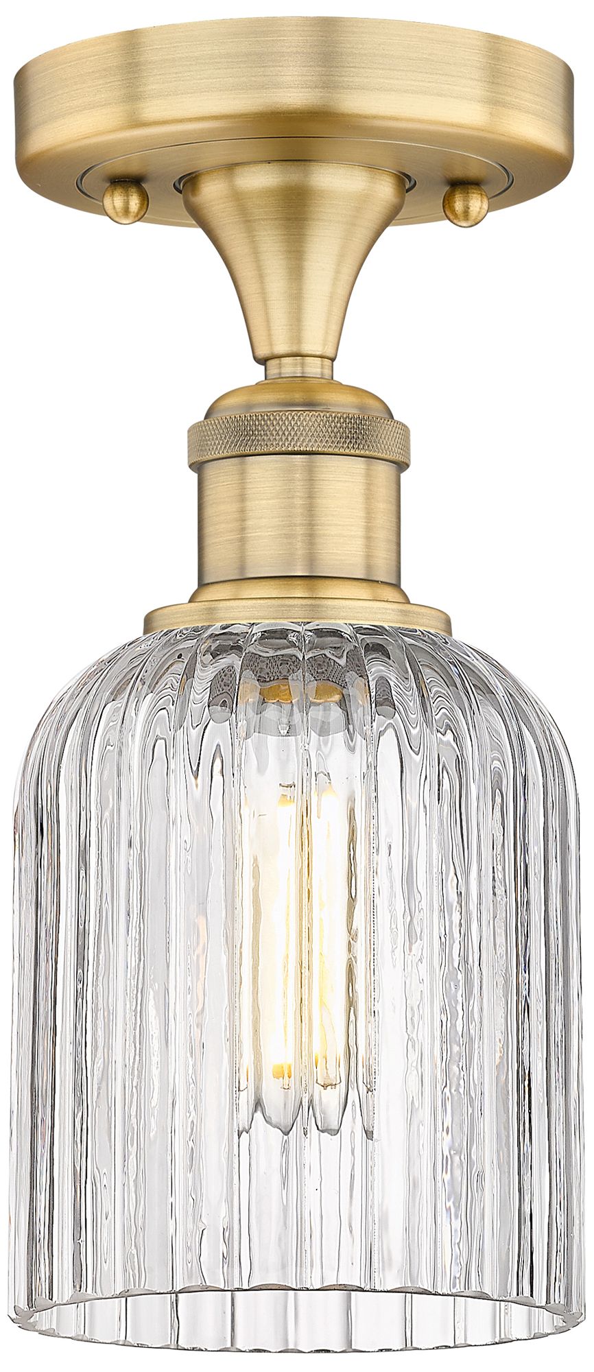 Edison Bridal Veil 5" Wide Brushed Brass Semi-Flush Mount With Clear S