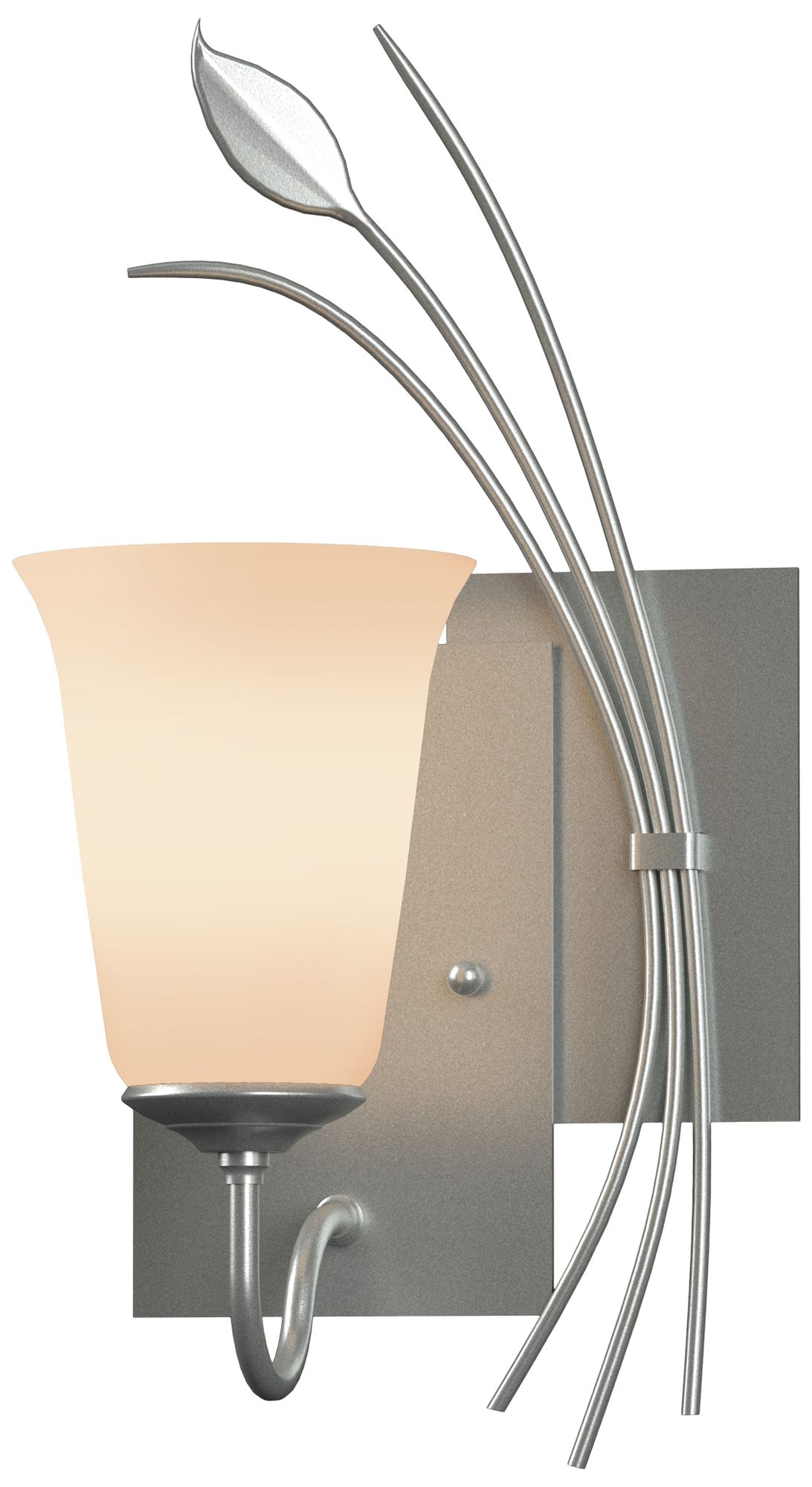 Forged Leaf 14.6"H Right Vintage Platinum Sconce w/ Opal Glass Shade