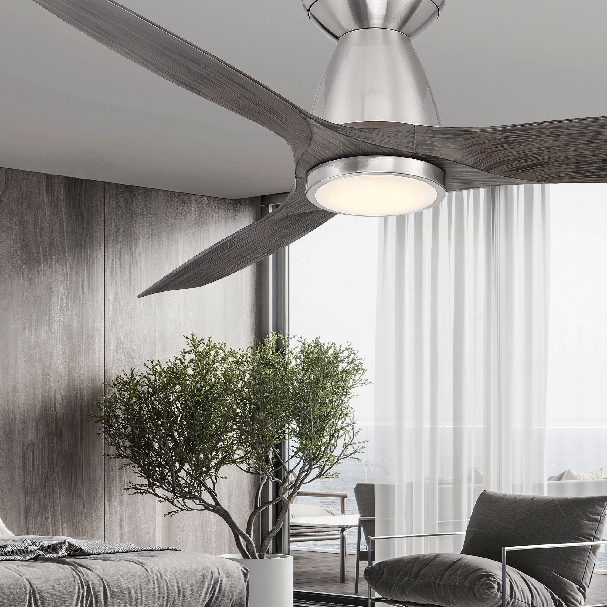 54" Modern Forms Skylark Brushed Nickel 2700K LED Smart Ceiling Fan