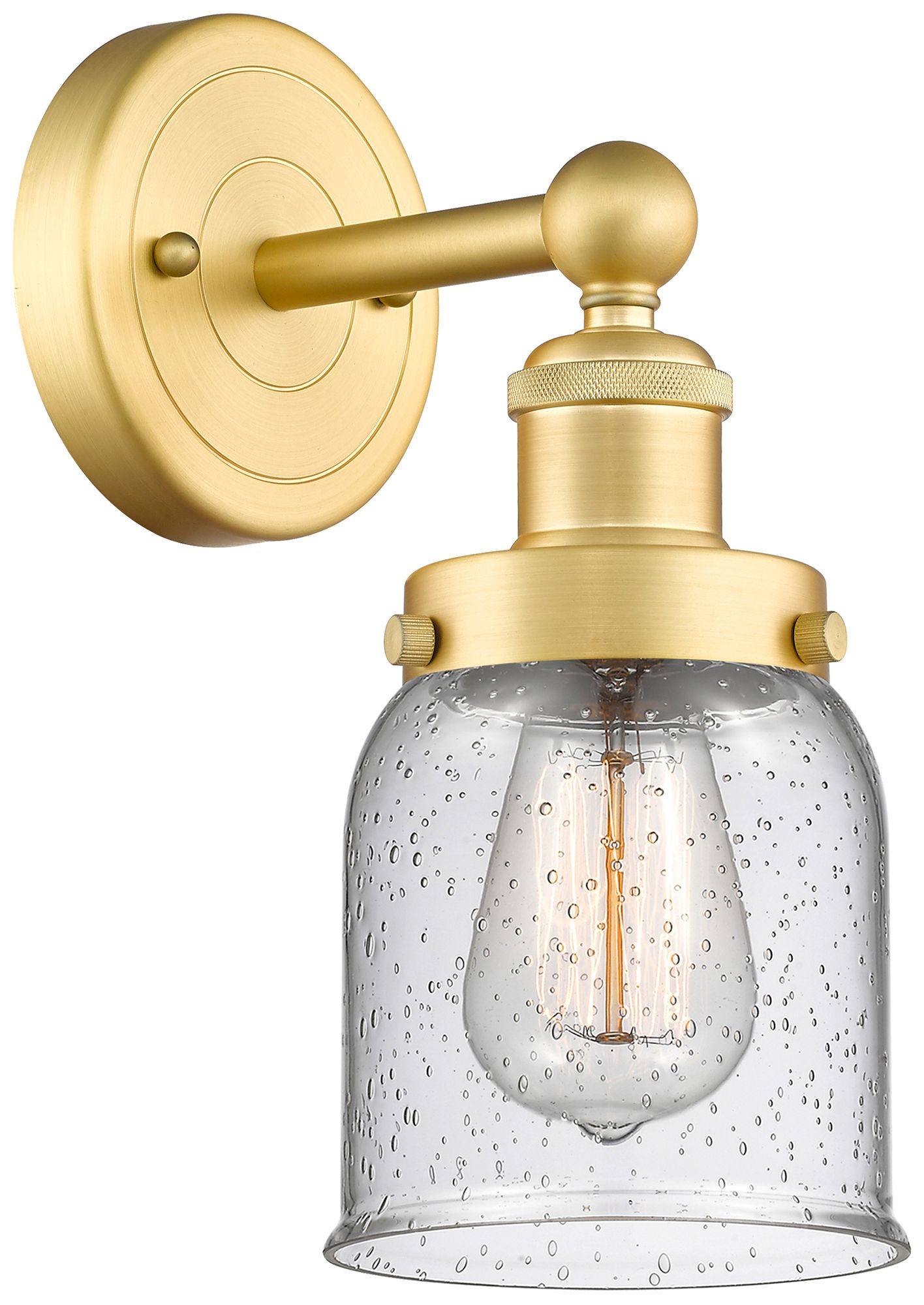 Small Bell 2.25" High Satin Gold Sconce With Seedy Shade