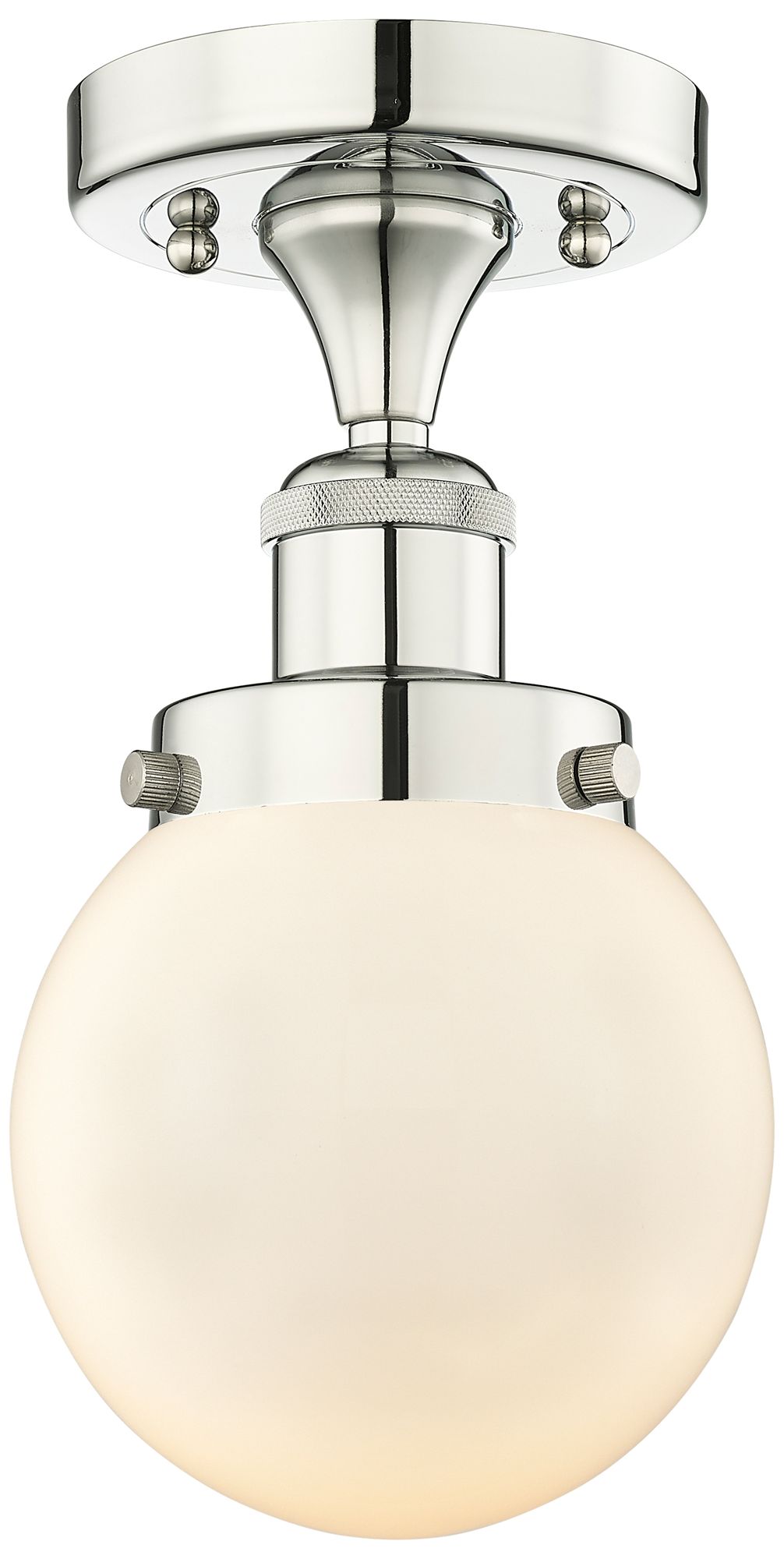 Beacon 6"W Polished Nickel Semi.Flush Mount With Matte White Glass Sha