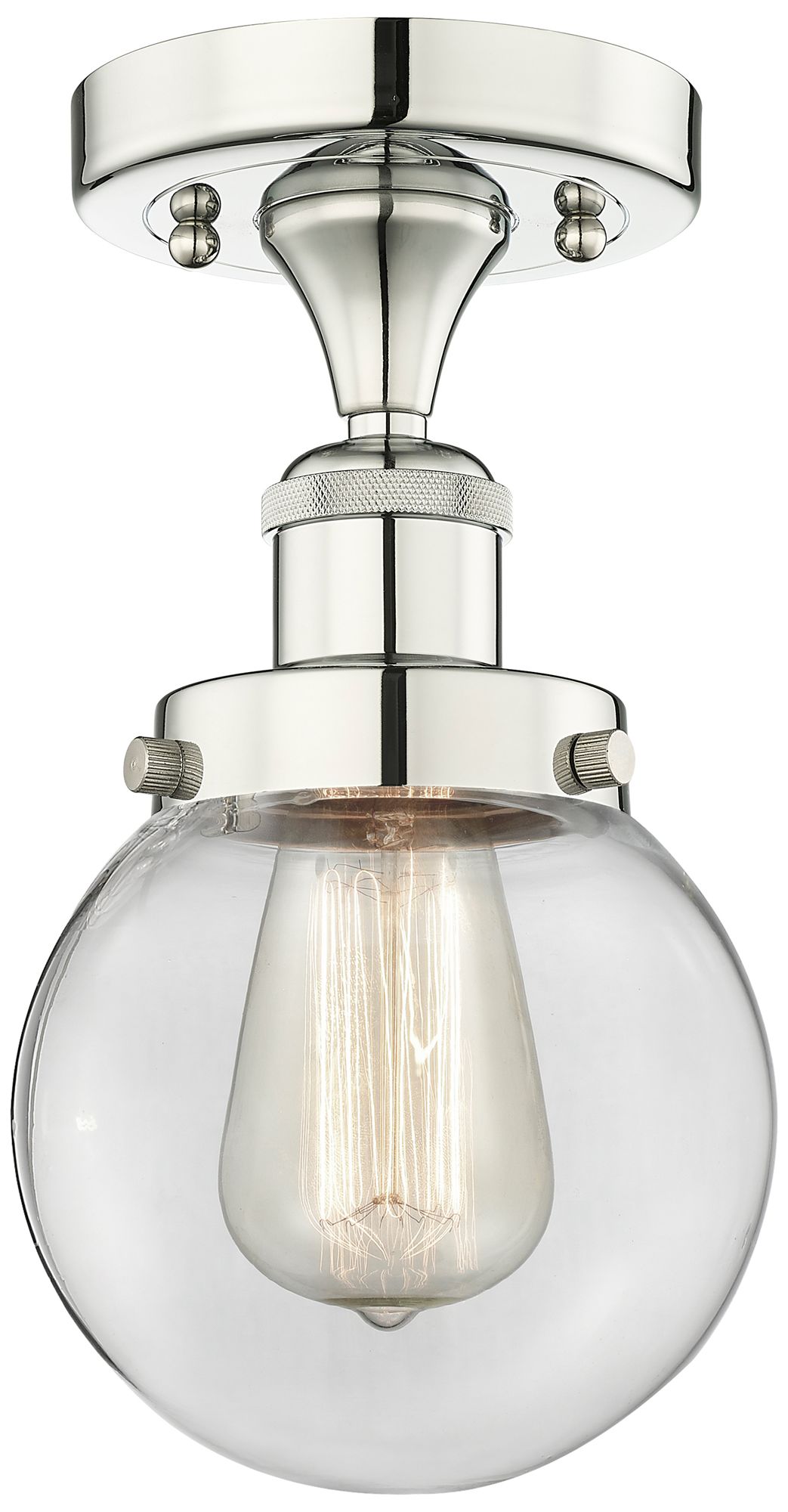Beacon 6" Wide Polished Nickel Semi.Flush Mount With Clear Glass Shade