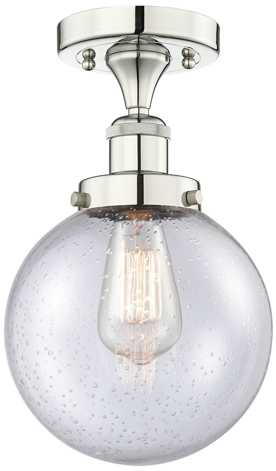 Beacon 8" Wide Polished Nickel Semi.Flush Mount With Seedy Glass Shade