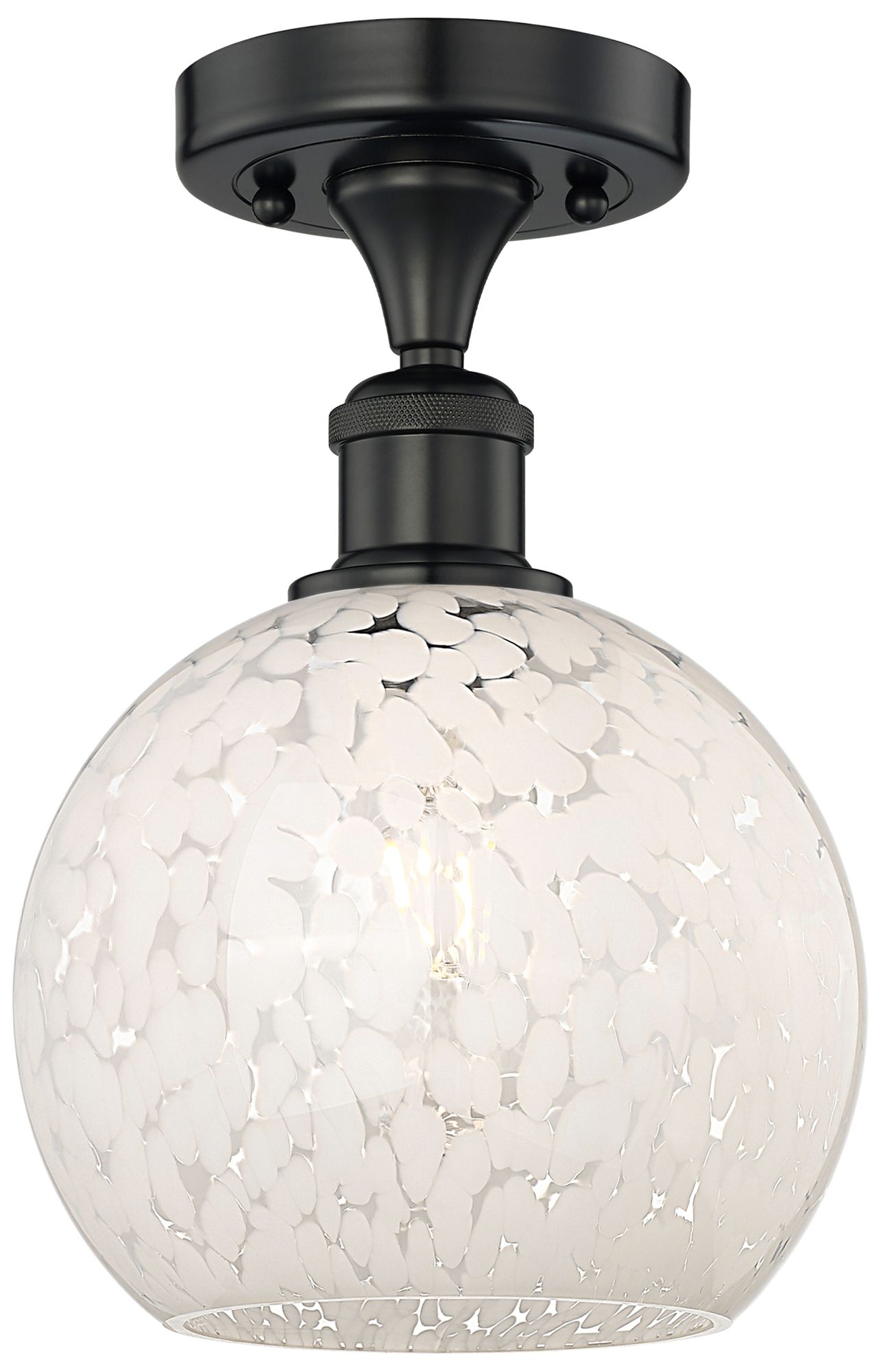 Edison 8" Wide Matte Black Semi-Flush Mount With White Mouchette Shade