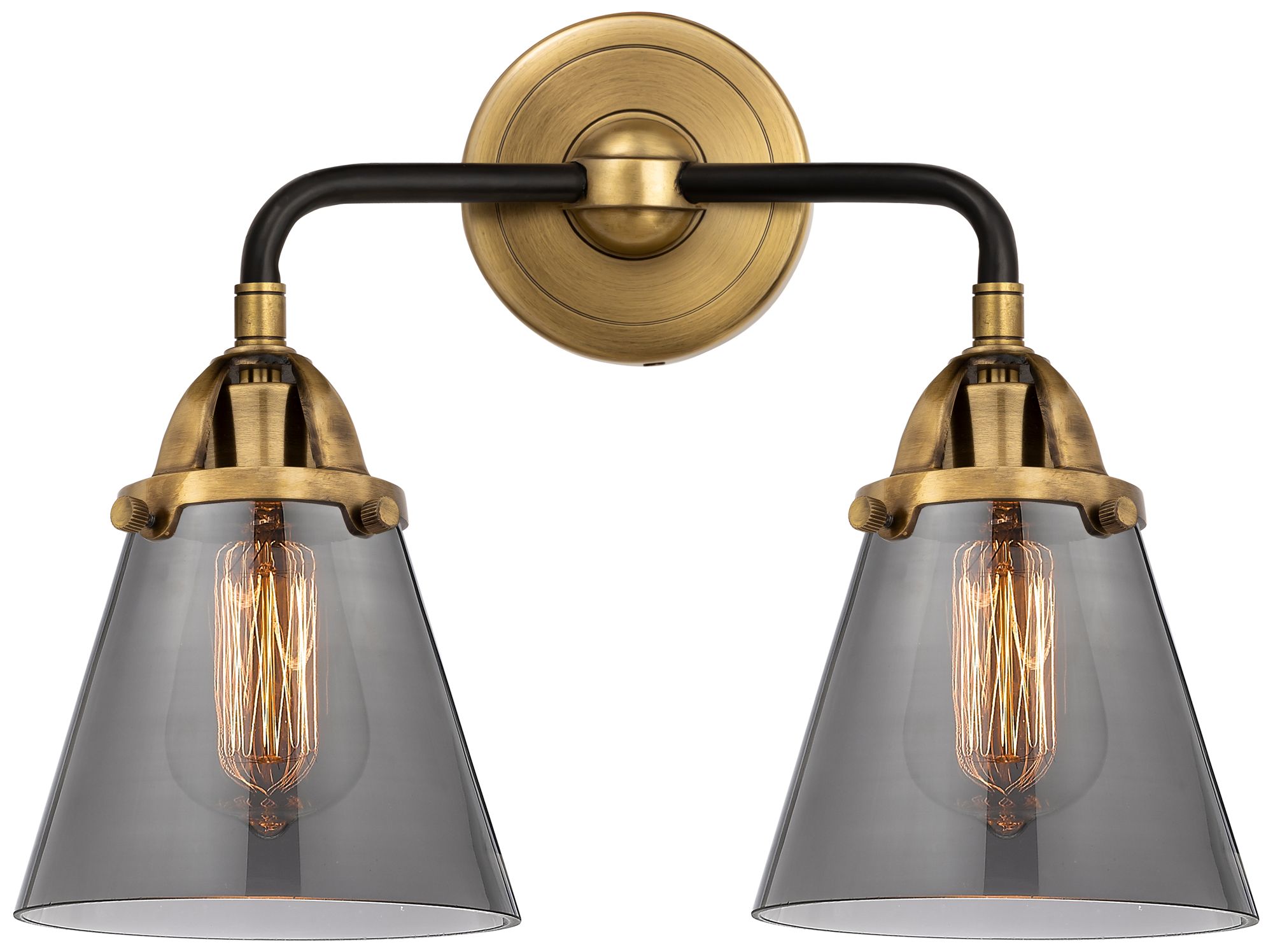 Nouveau 2 Cone 6" 2 Light 14" Bath Light - Black Brass - Smoke Sh