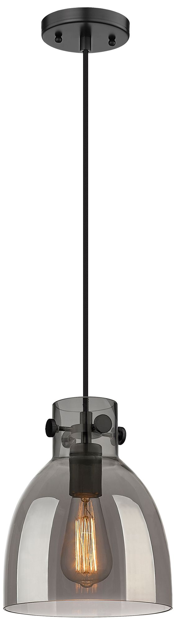 Newton Bell 8" Wide Matte Black Cord Hung Pendant With Plated Smoke Sh