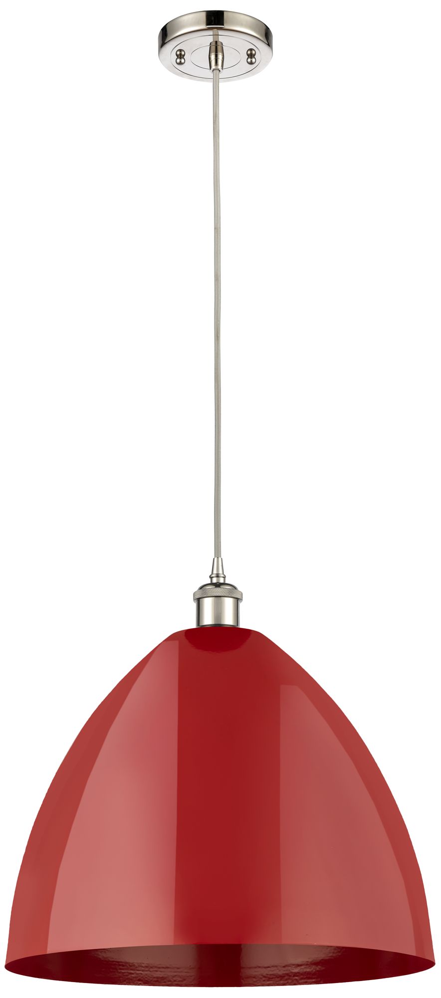 Ballston Plymouth Dome 16"W Polished Nickel Corded Mini Pendant Red Sh