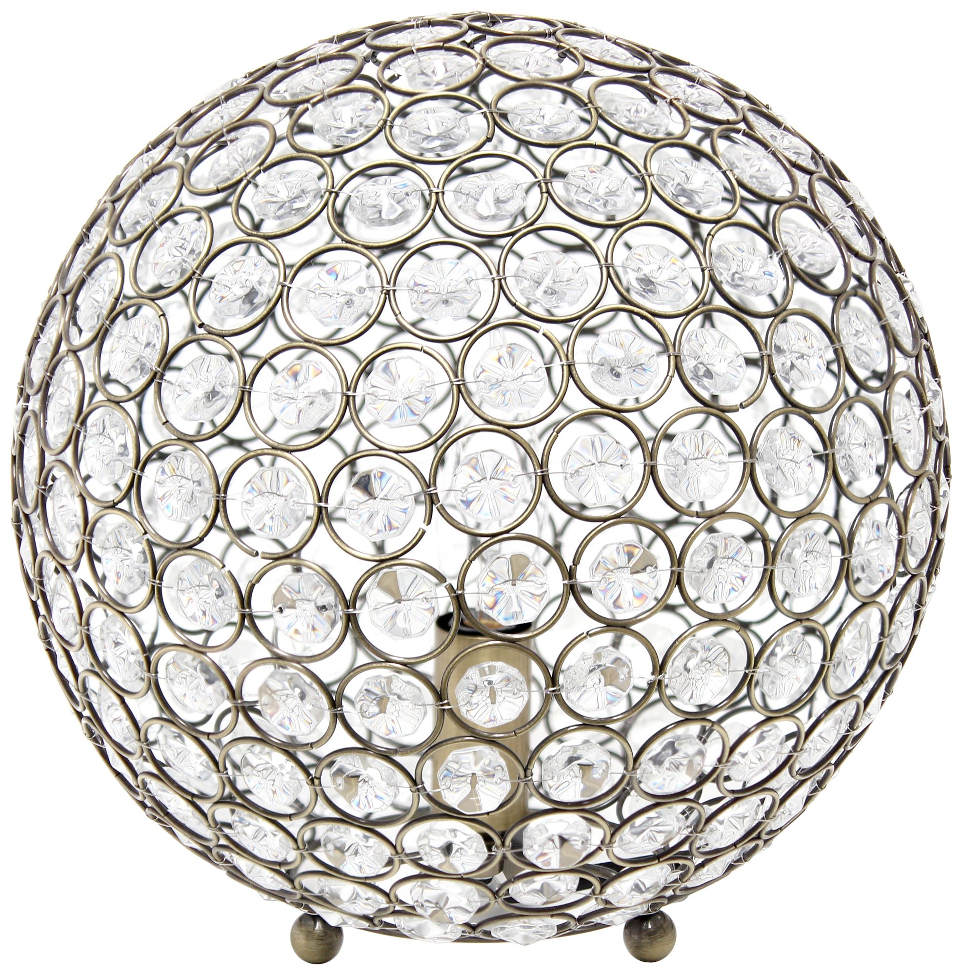Lalia Home Elipse 10" Metal Crystal Glam Orb Table Lamp, Antique Brass