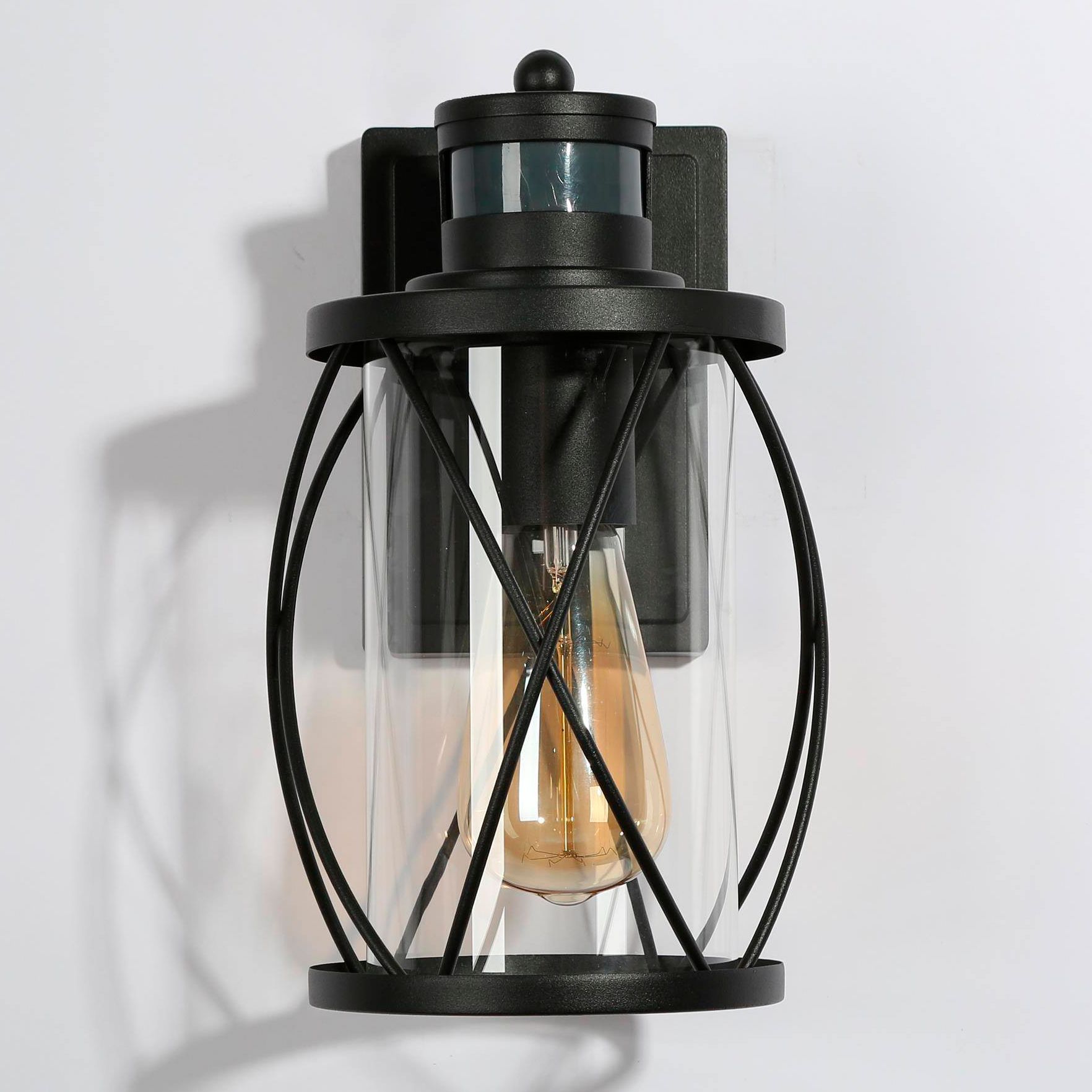 11" High Textured Black Motion Sensor Cylinder Metal Outdoor Wall Ligh