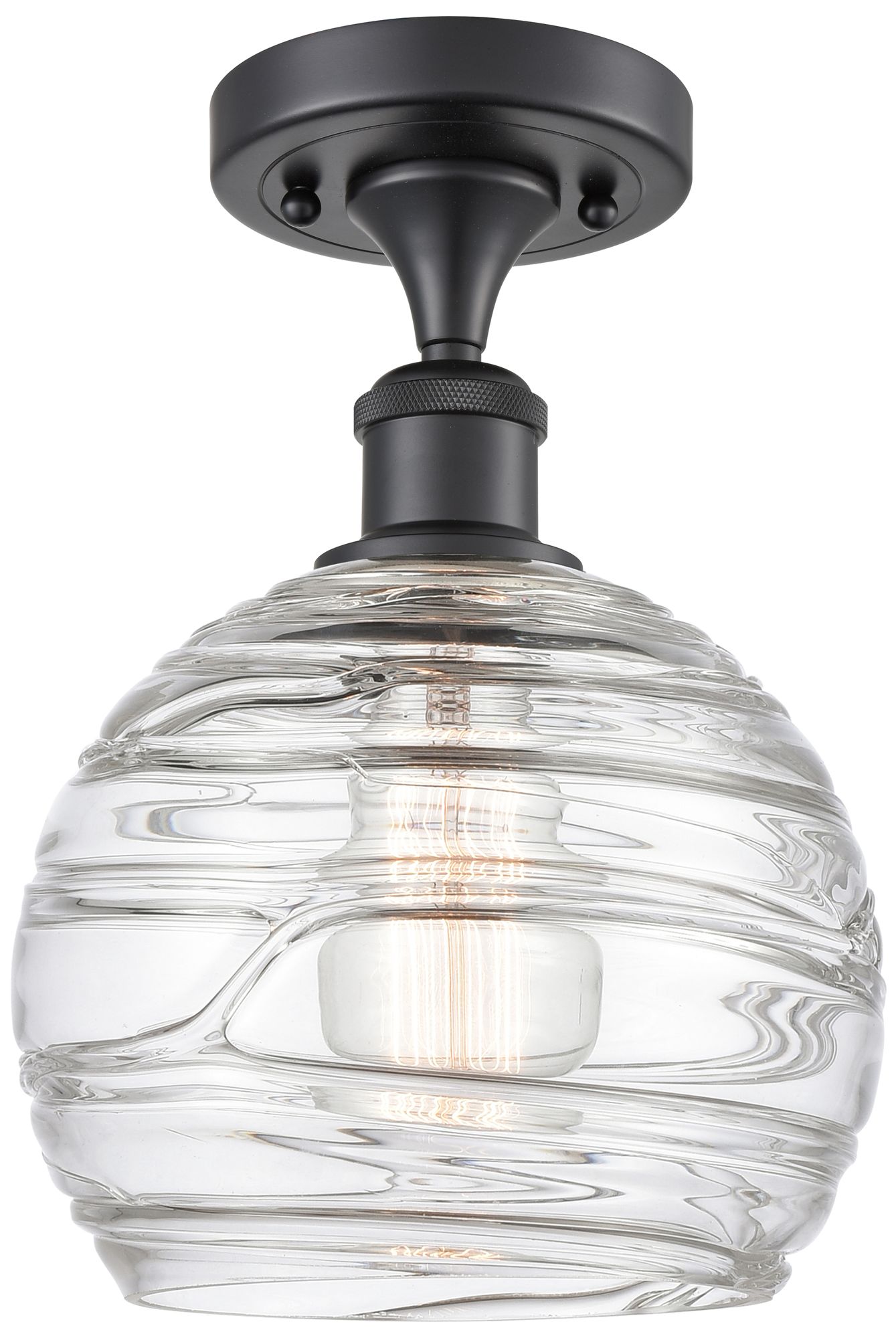 Athens Deco Swirl 8" LED Semi-Flush Mount - Matte Black - Clear Deco