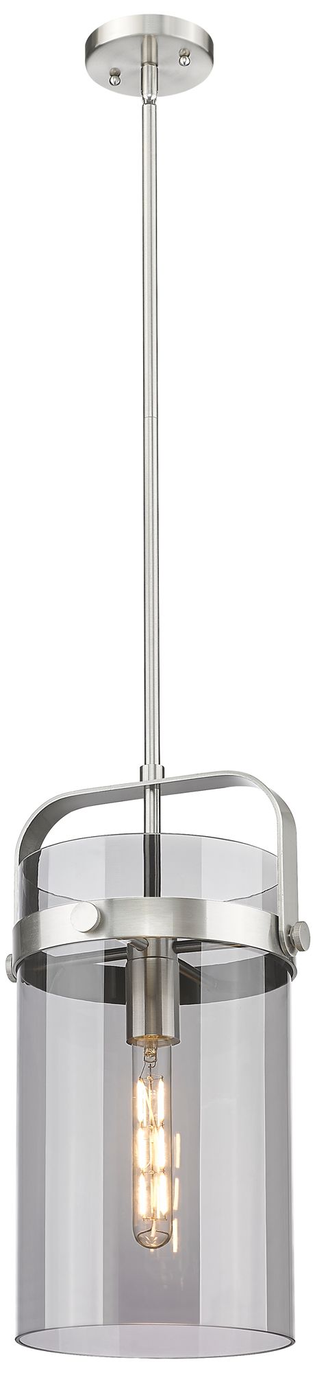 Pilaster 9.38" Wide Stem Hung Satin Nickel Pendant With Smoke Shade