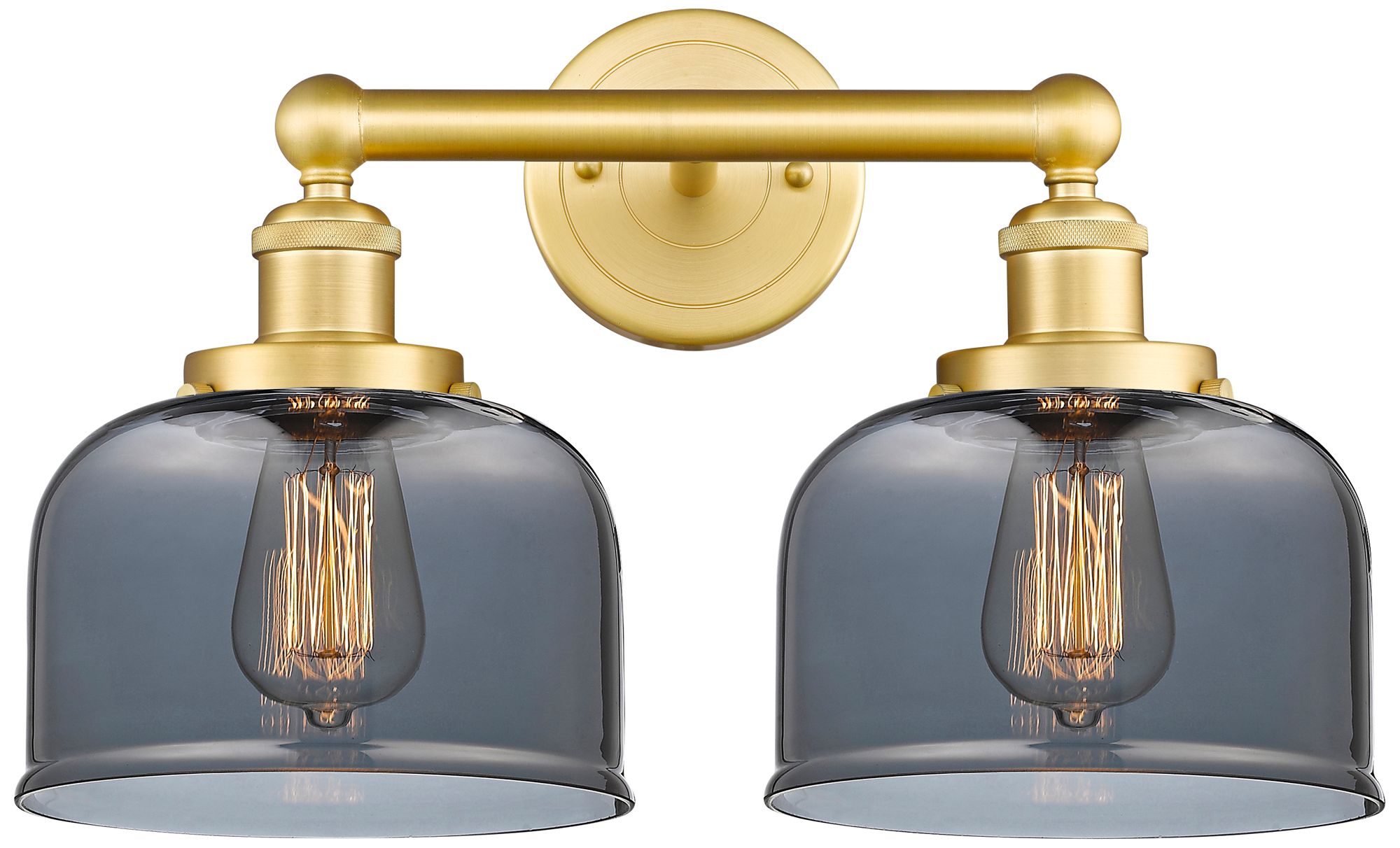 Edison Bell 15.5"W 2 Light Satin Gold Bath Light With Plated Smoke Sha