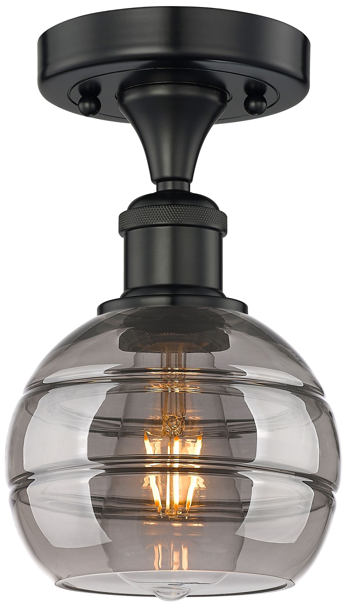 Edison Rochester 5.88"W Matte Black Semi-Flush Mount w/ Light Smoke Sh