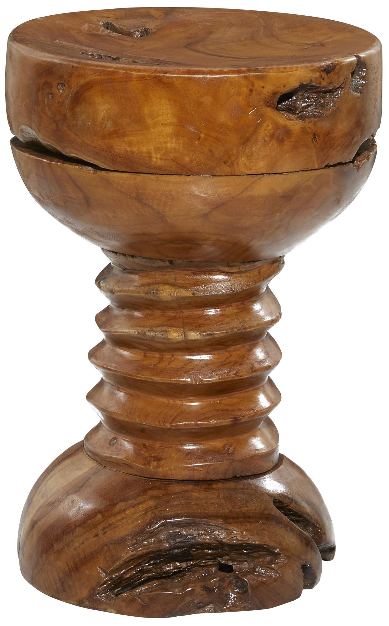 Brown Teak Wood Rustic Accent Table, 13" x 13" x 20"