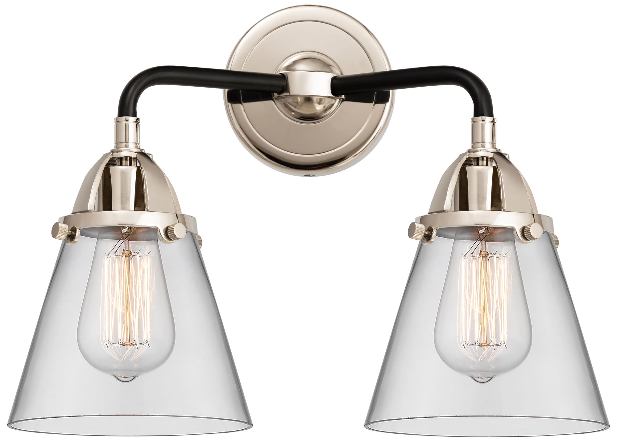 Nouveau 2 Cone 6" 2 Light 14" Bath Light - Black Polished Nickel