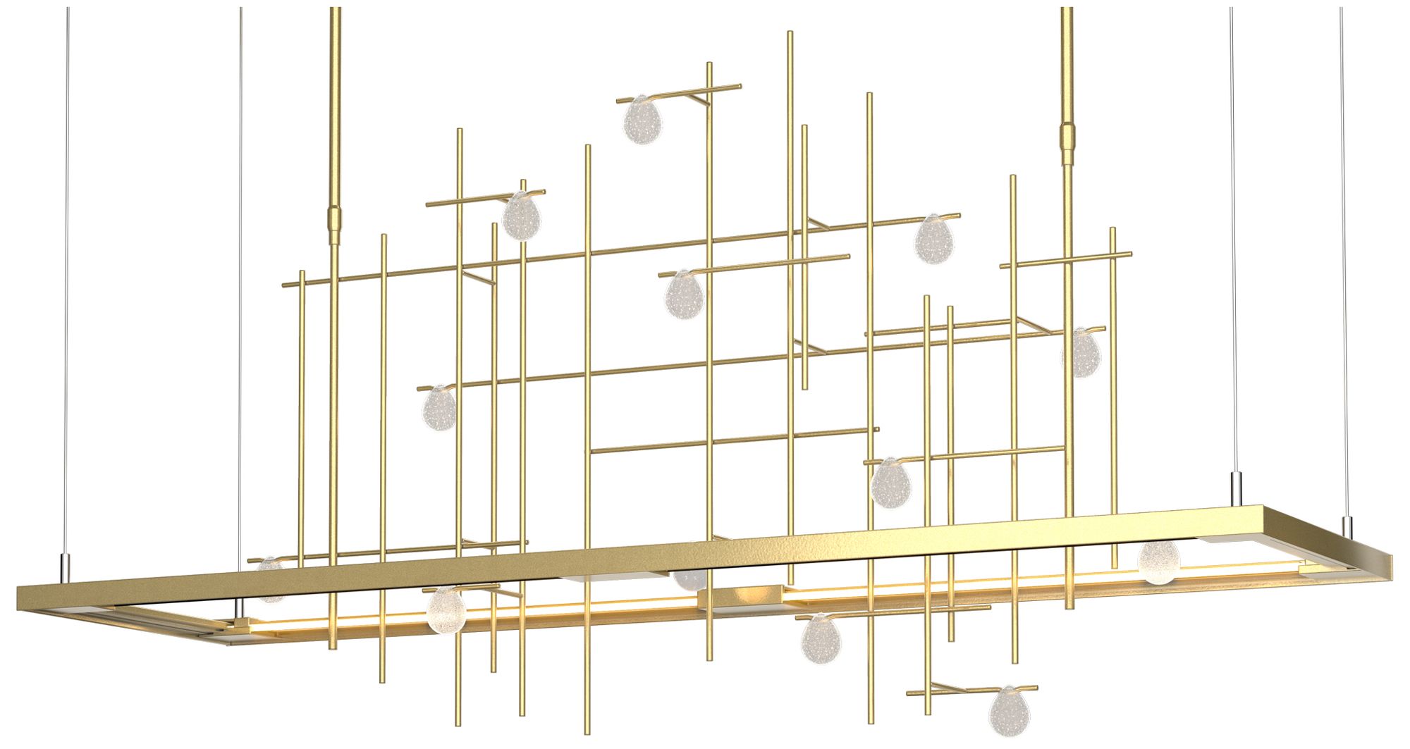 Spring 53.4"W Modern Brass Long LED Pendant w/ Clear Bubble Glass Shad