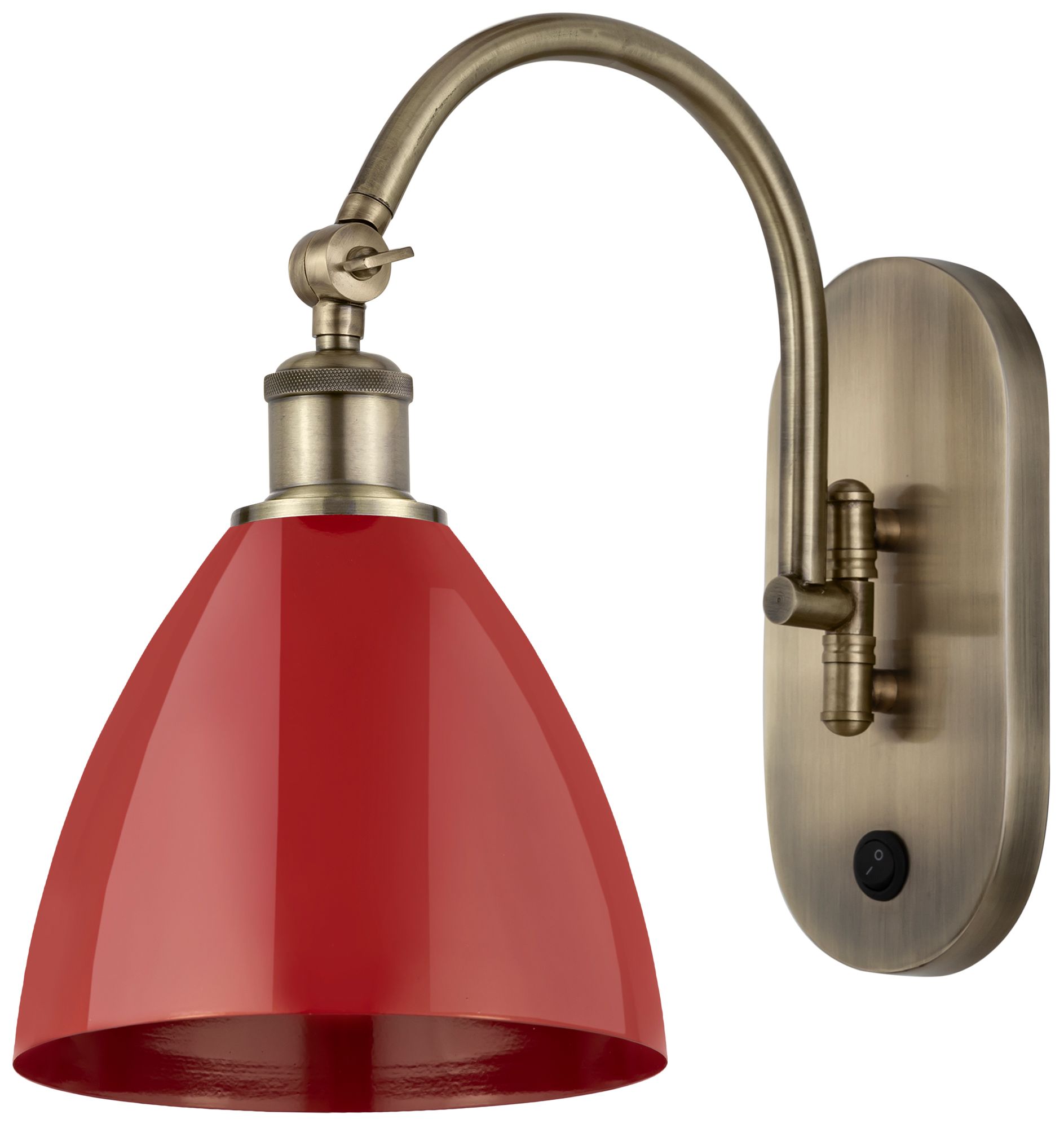 Ballston Plymouth Dome 13.25" High Antique Brass Sconce w/ Red Shade