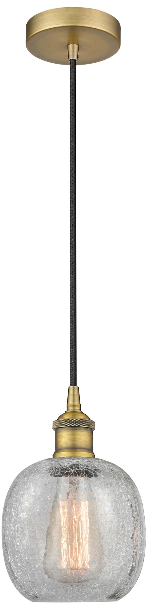 Edison Belfast 6" Brushed Brass Corded Mini Pendant w/ Clear Crackle S