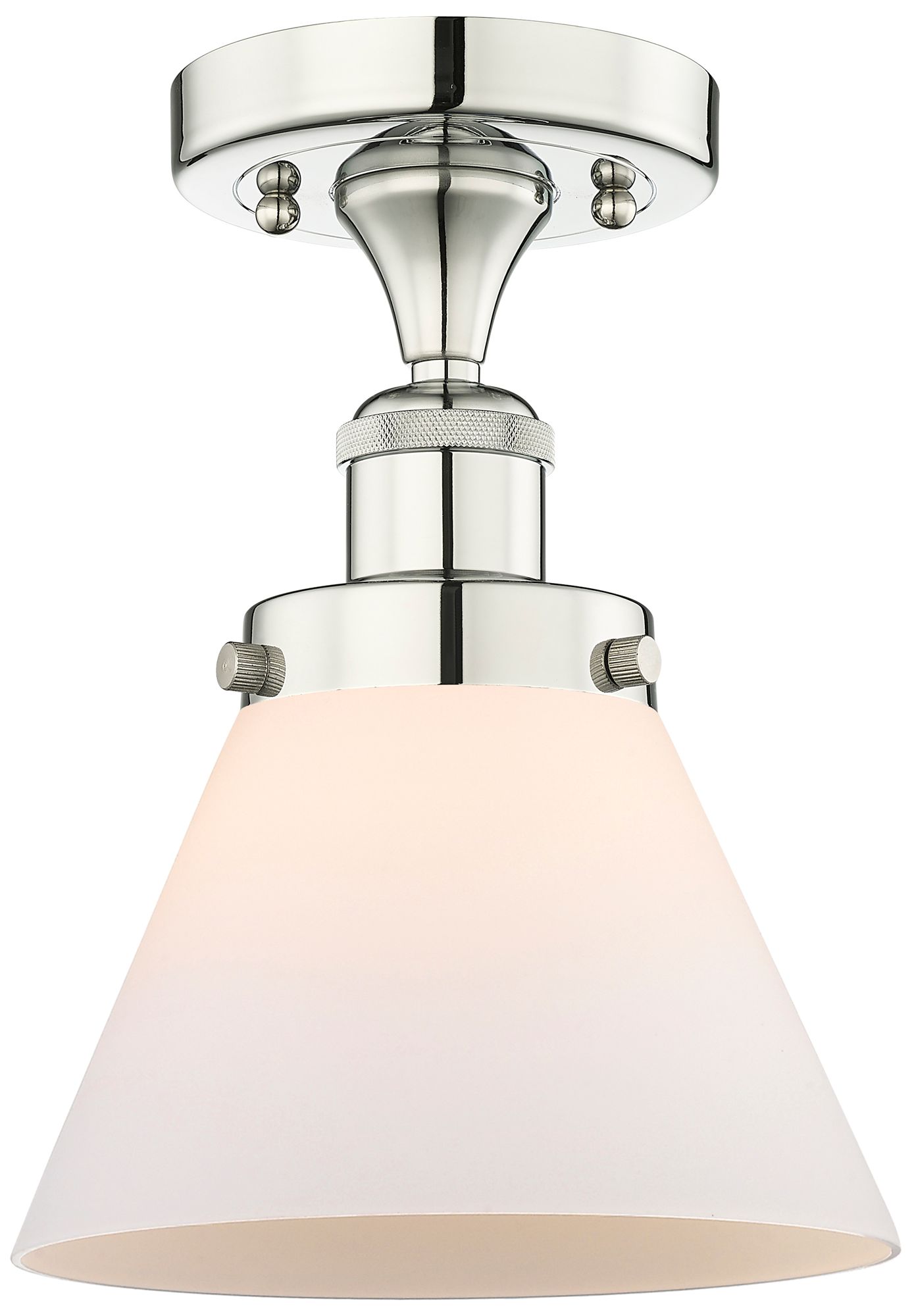 Cone 7.75"W Polished Nickel Semi.Flush Mount With Matte White Glass Sh