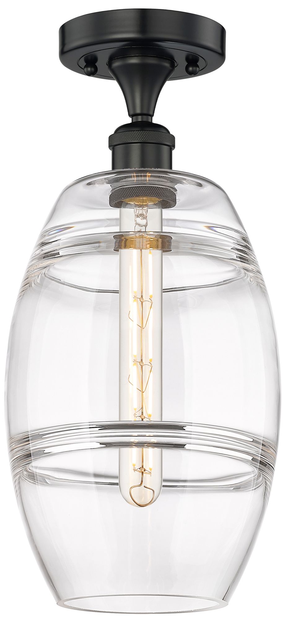 Edison Vaz 8" Wide Matte Black Semi-Flush Mount With Clear Shade