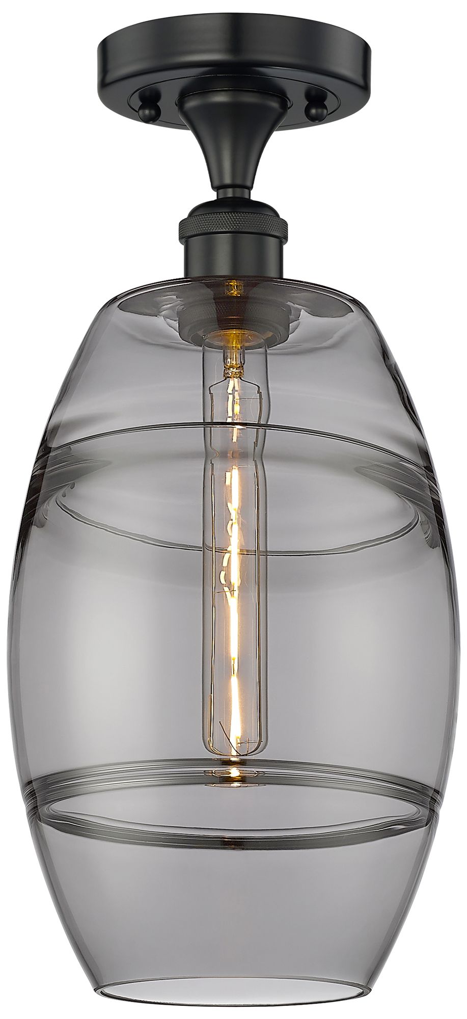 Edison Vaz 8" Wide Matte Black Semi-Flush Mount With Light Smoke Shade