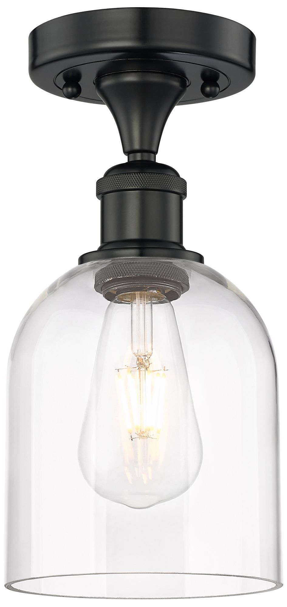 Edison Bella 5.5" Wide Matte Black Semi-Flush Mount With Clear Shade