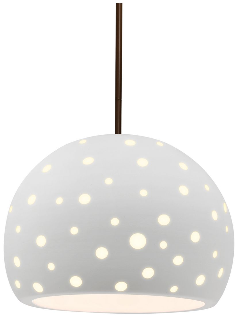 Perforated Globe 12.25"W Bisque, Dark Bronze Pendant - White Cord