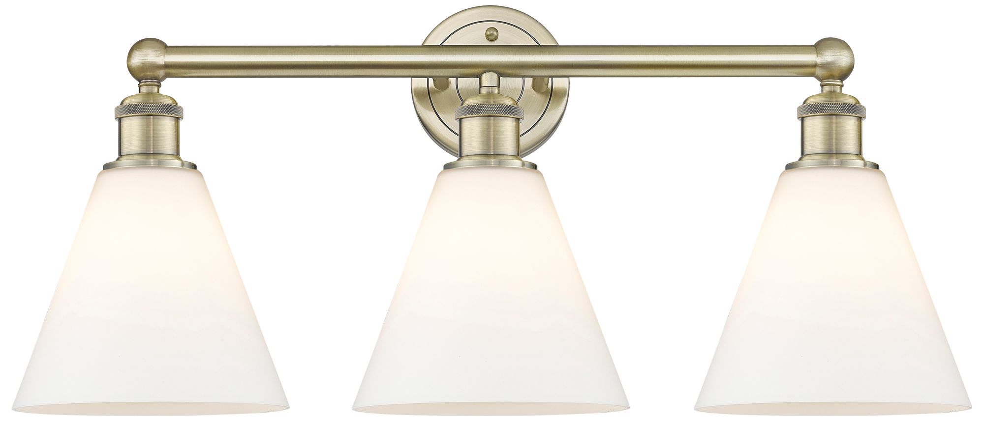Berkshire 26"W 3 Light Antique Brass Bath Vanity Light With White Shad