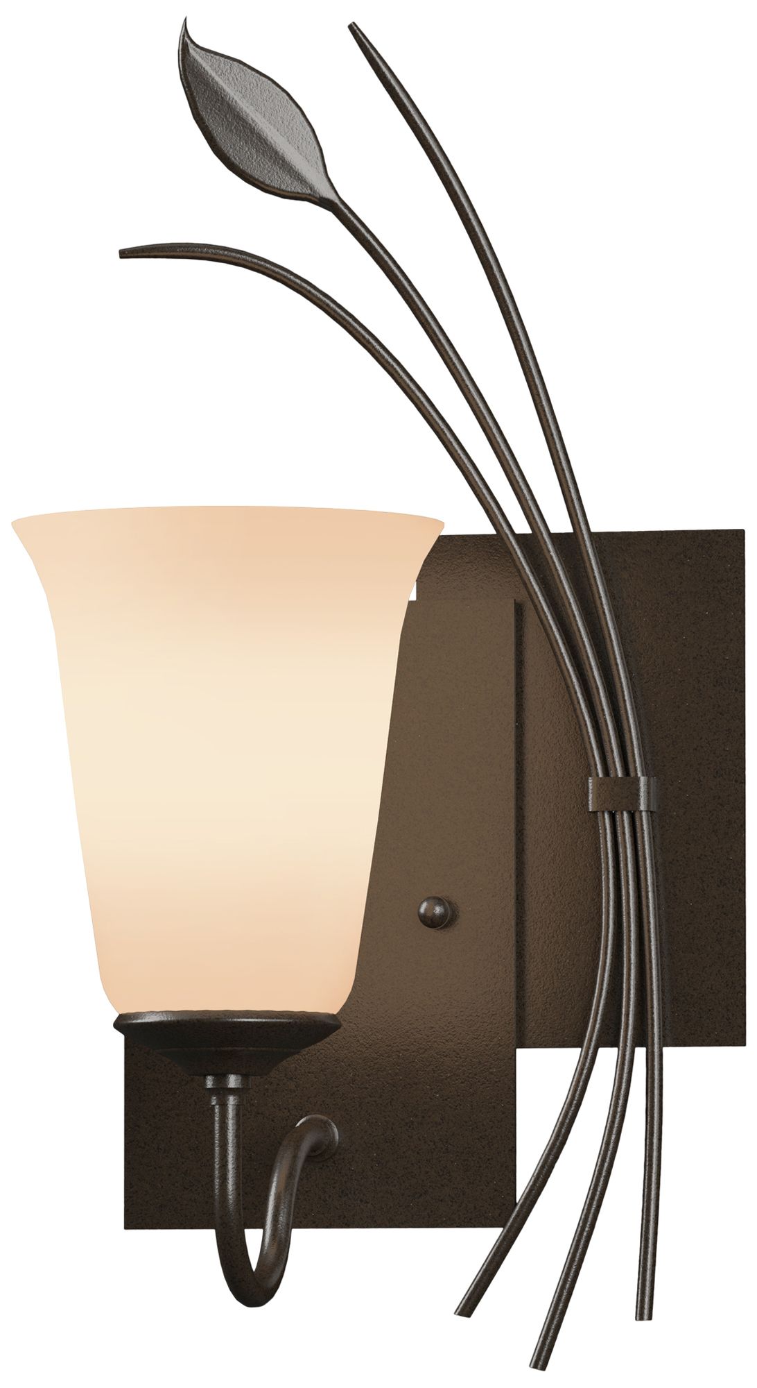 Forged Leaf 14.6"H Right Oil Rubbed Bronze Sconce w/ Opal Glass Shade