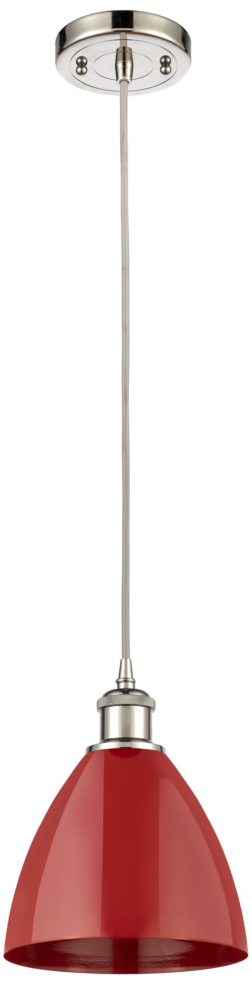 Ballston Plymouth Dome 7.5"W Polished Nickel Corded Mini Pendant Red S