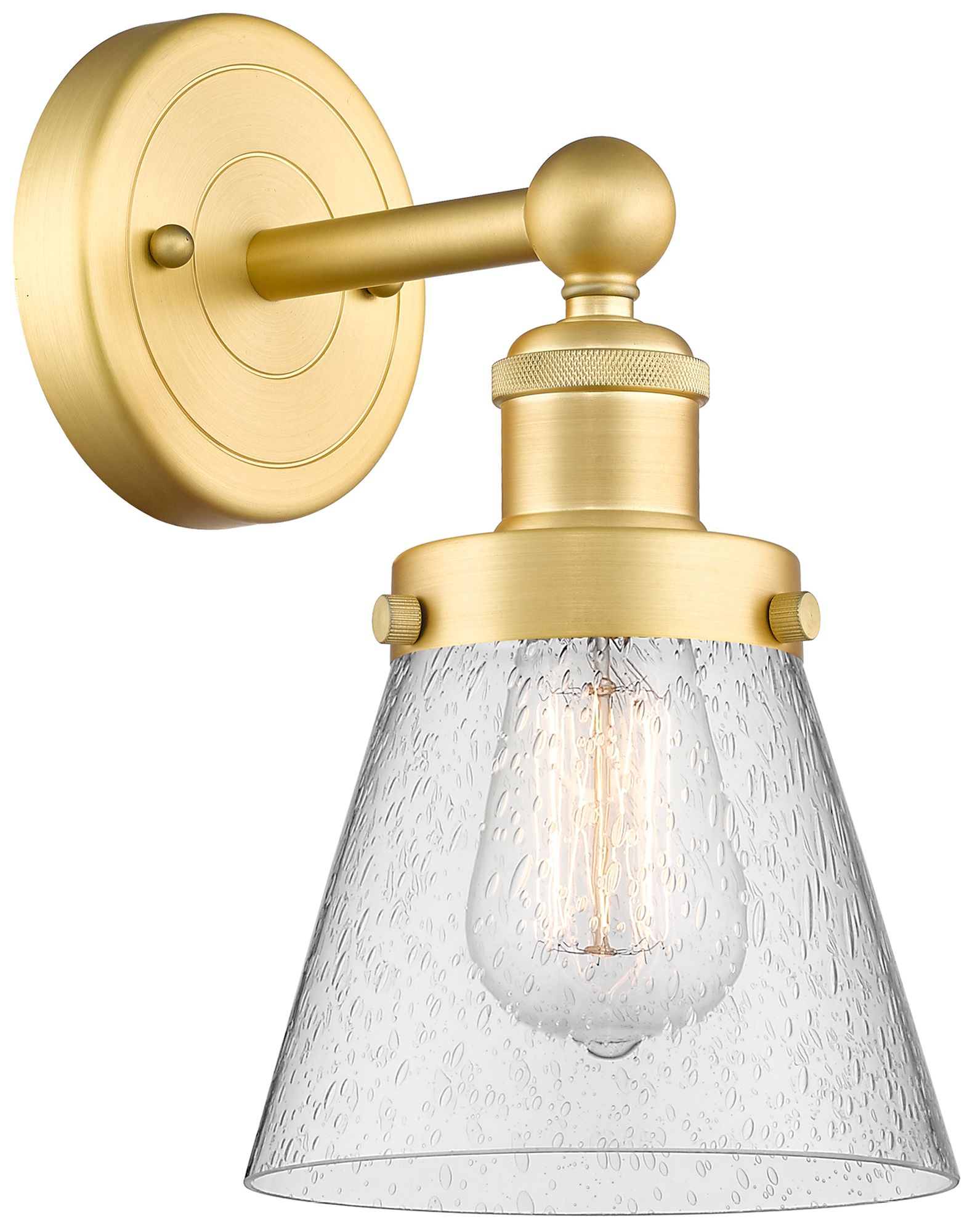 Small Cone 2.25" High Satin Gold Sconce With Seedy Shade
