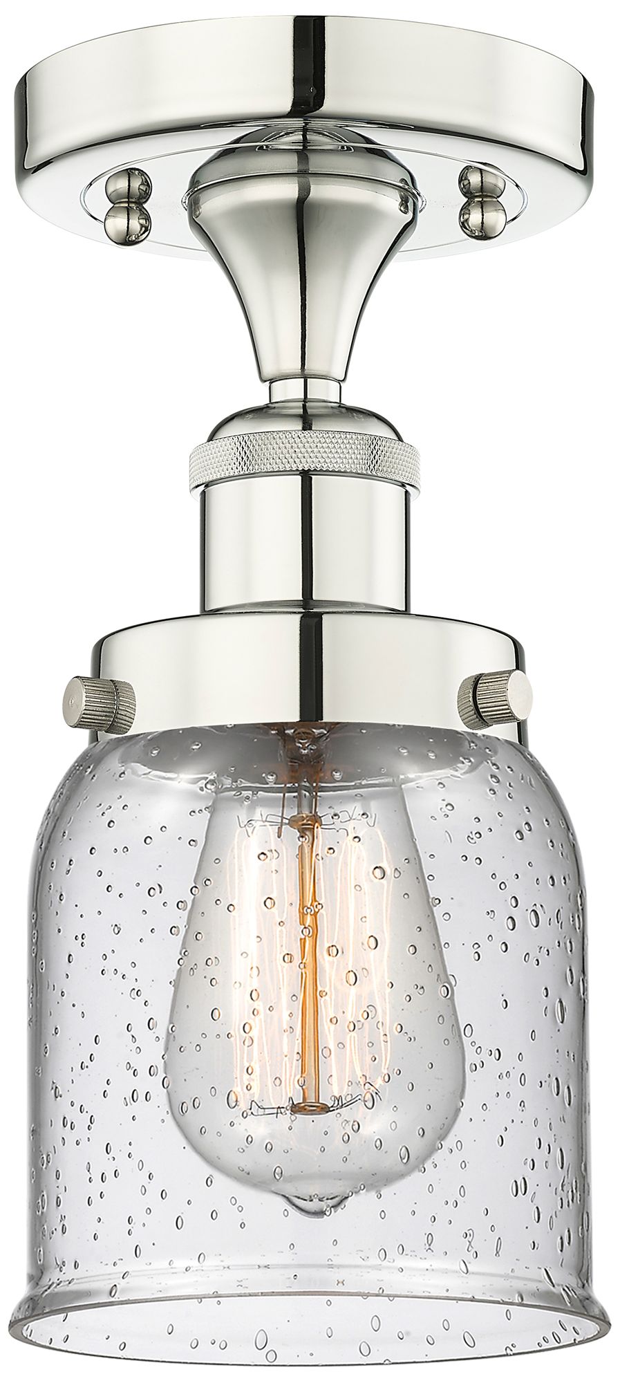 Bell 5" Wide Polished Nickel Semi.Flush Mount With Seedy Glass Shade