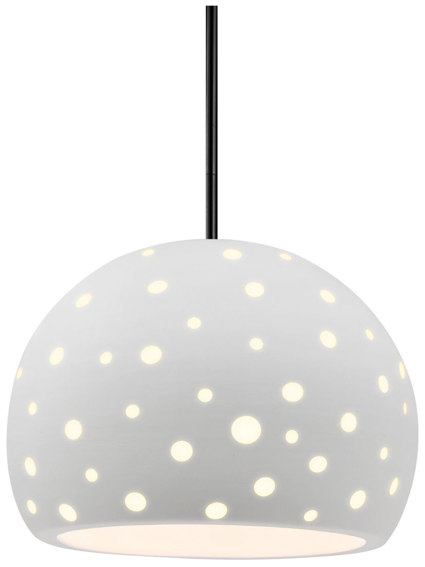 Perforated Globe 12.25"W Bisque, Matte Black Pendant - White Cord