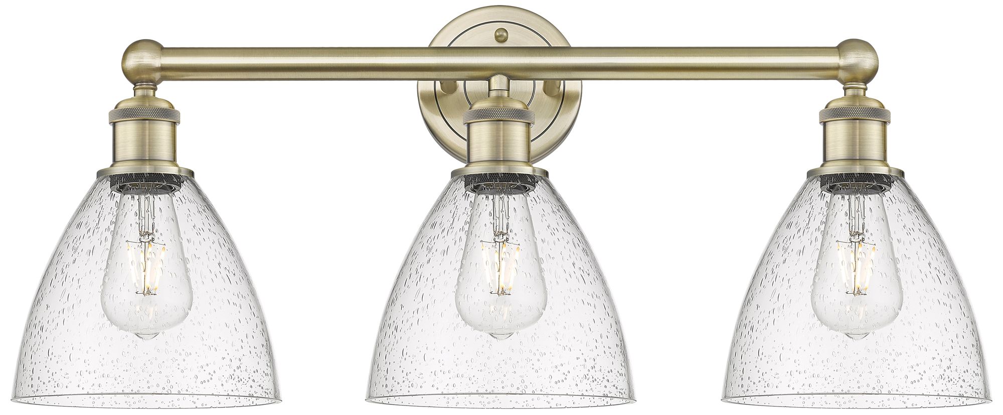 Bristol Glass 25.5"W 3 Light Antique Brass Bath Light With Seedy Shade