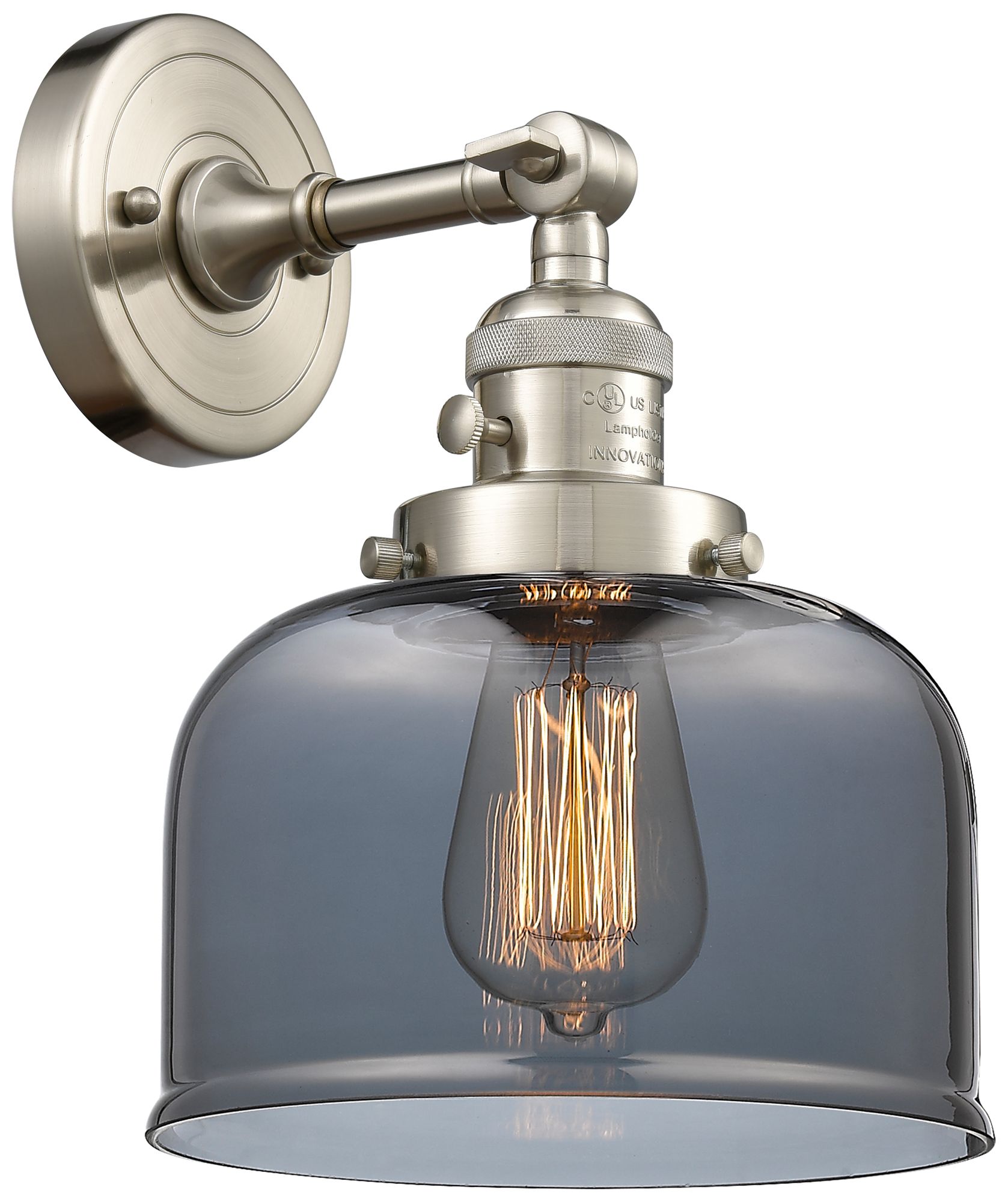 Bell 8" Brushed Satin Nickel Sconce w/ Plated Smoke Shade