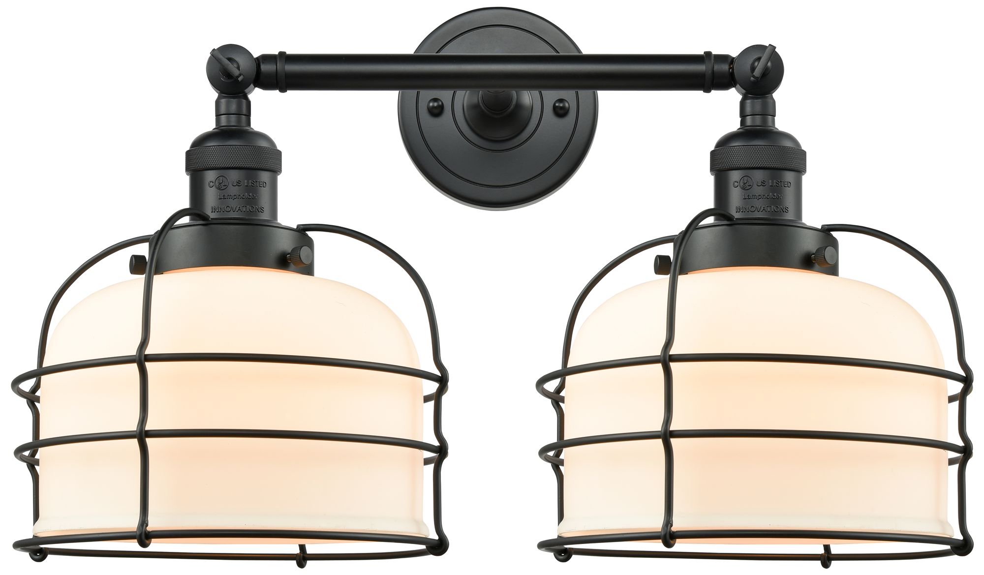 Franklin Bell Cage 19" 2-Light Matte Black Bath Light w/ White Shade