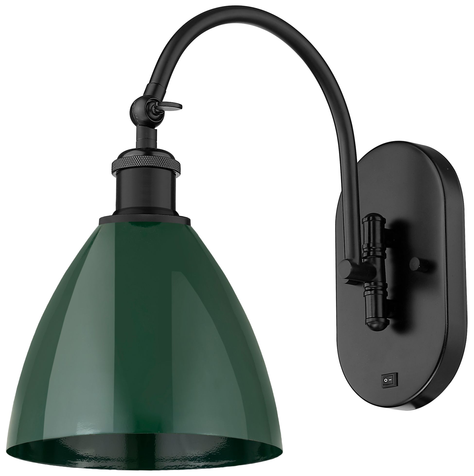 Ballston Plymouth Dome 13.25" High Matte Black Sconce w/ Green Shade
