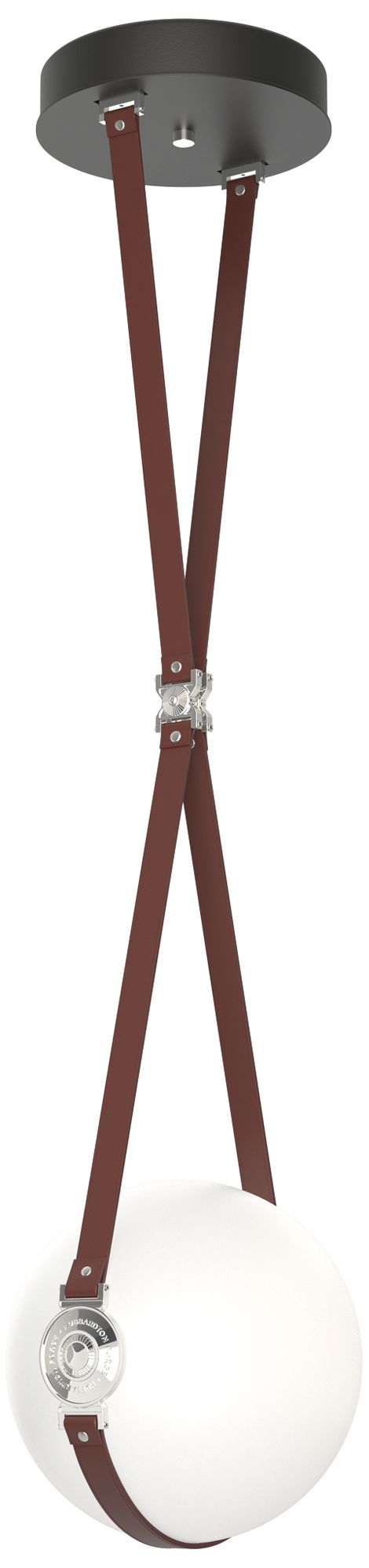 Derby 10.9"W Polished Nickel Branded Plate LED Pendant w/ Brown Straps