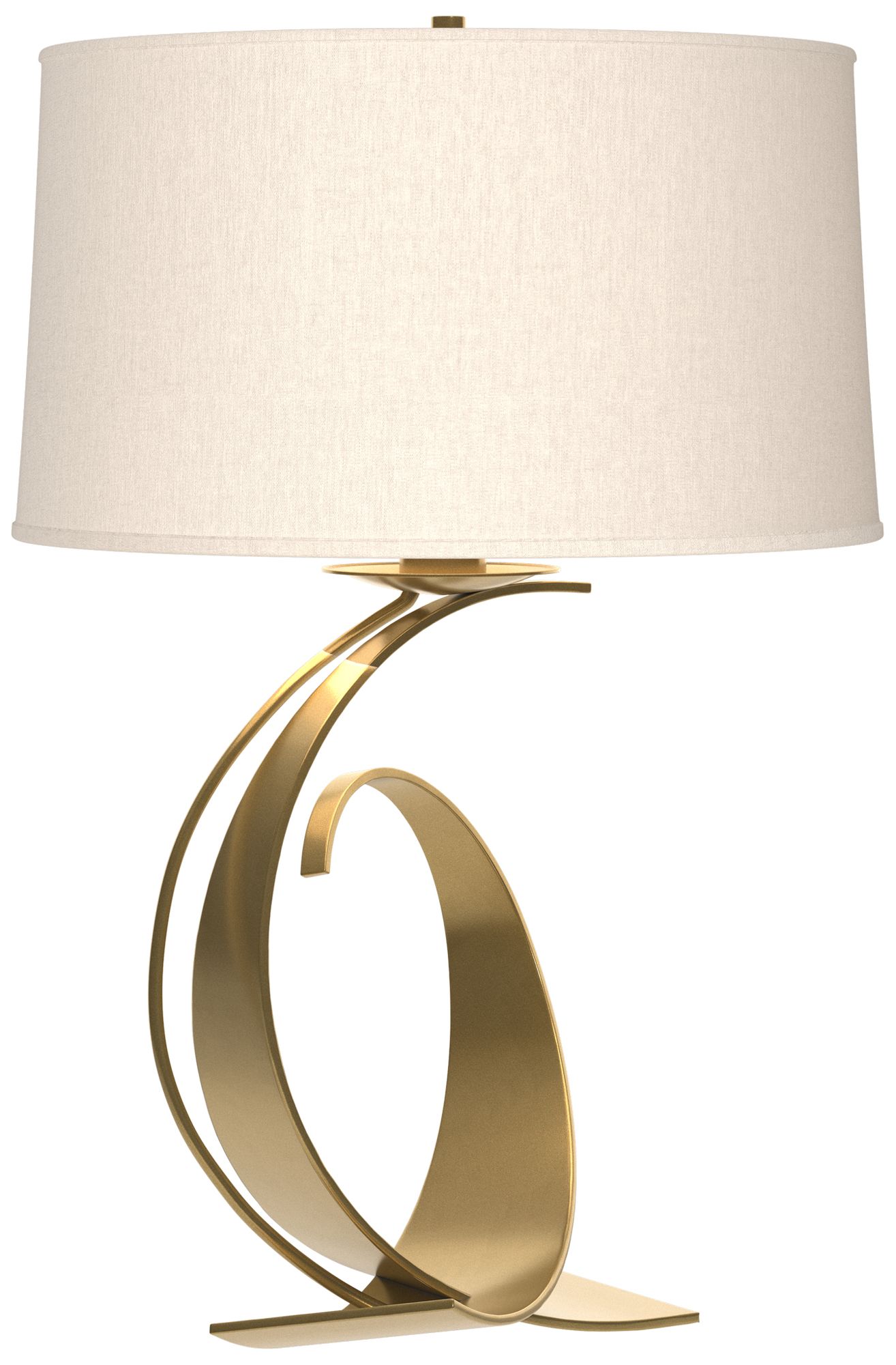 Fullered Impressions 29"H Modern Brass Table Lamp w/ Flax Shade