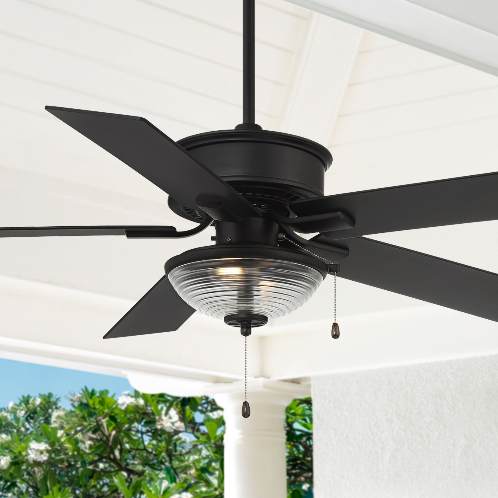 52" Casa Vieja Blazer Matte Black Outdoor Pull Chain LED Ceiling Fan