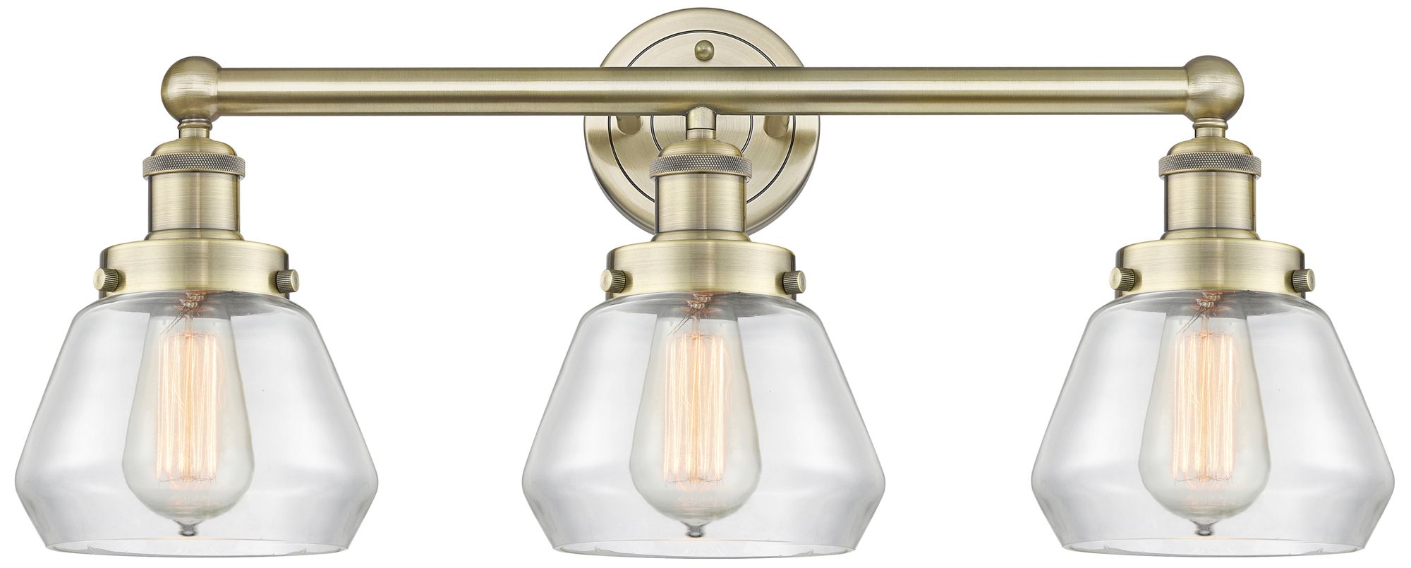 Edison Fulton 24.5"W 3 Light Antique Brass Bath Light With Clear Shade